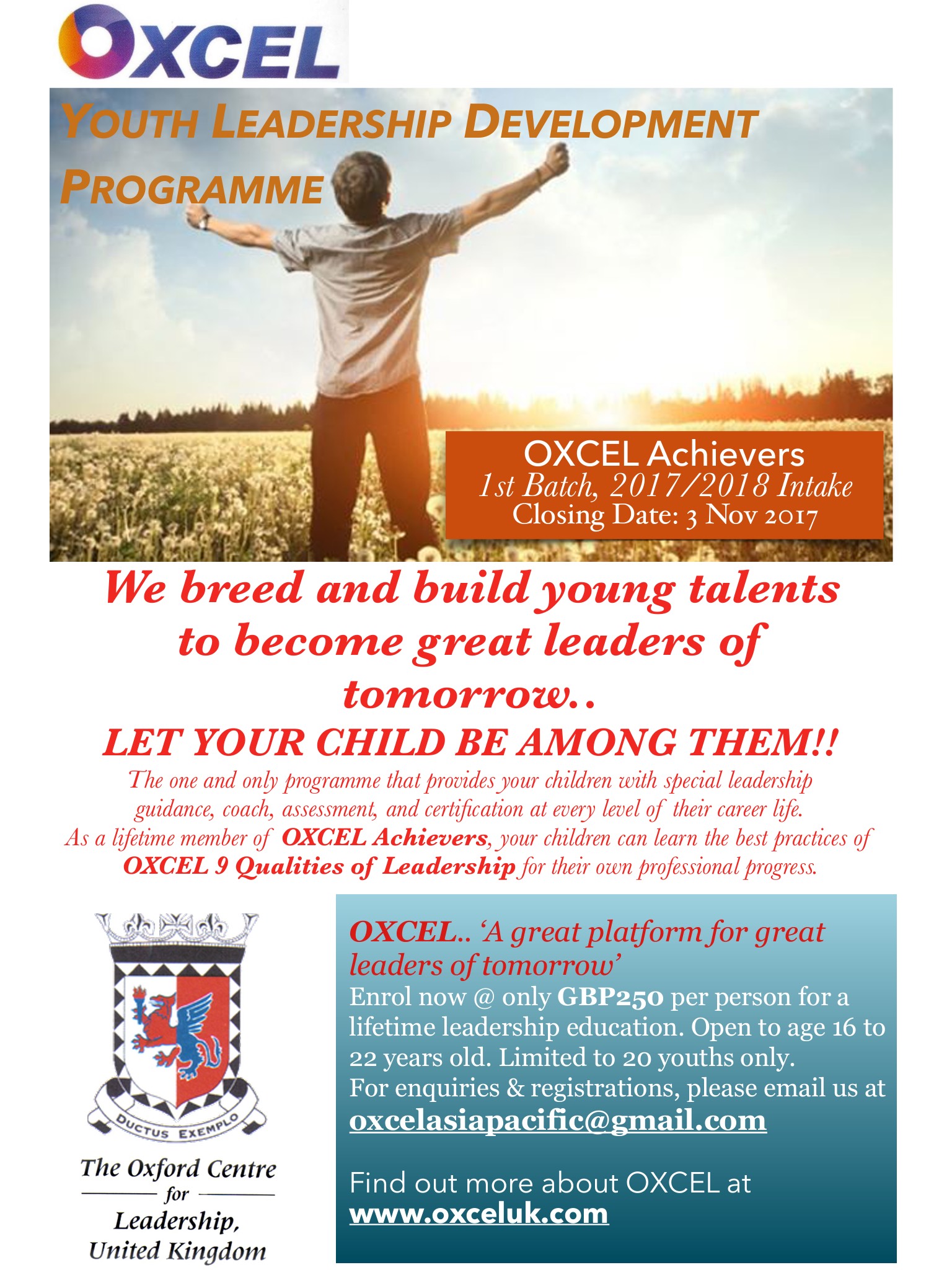 Launch of OXCEL Youth Leadership Development Programme On September 7, 2017October 26, 2017 By johnkerseyIn News Related