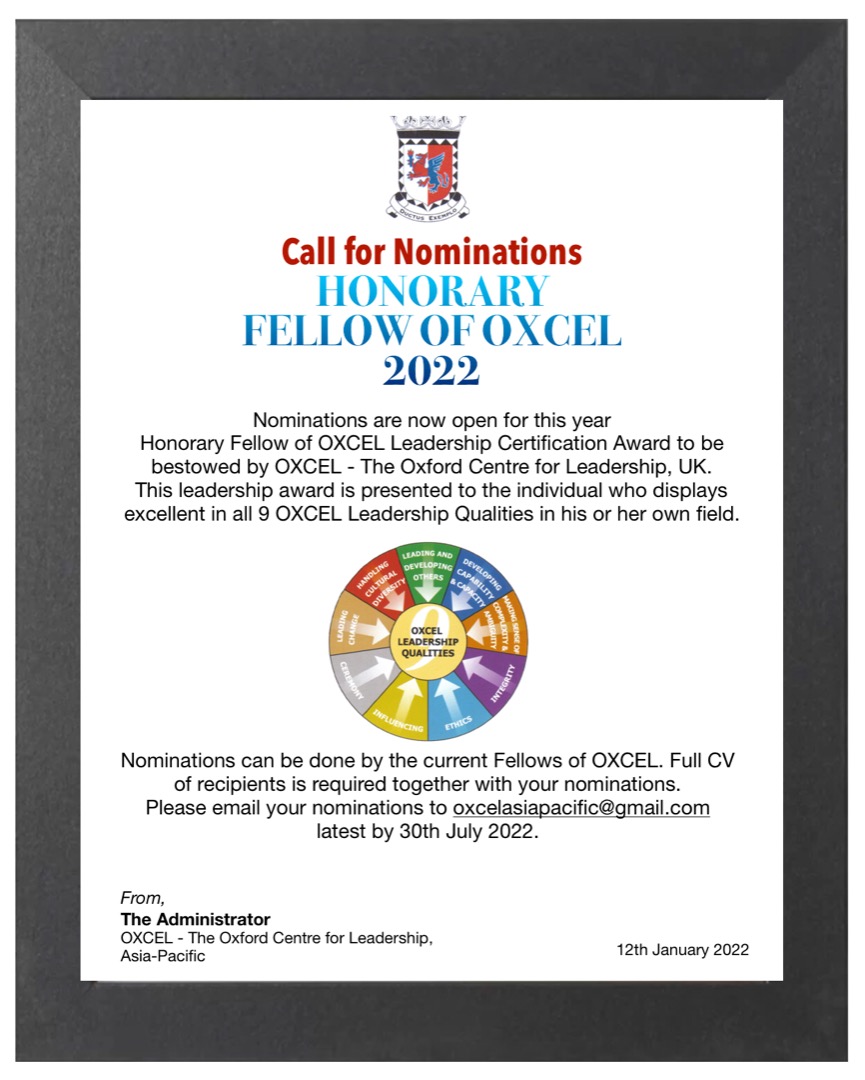 Honorary Fellow of OXCEL On January 21, 2022January 21, 2022 By johnkerseyIn News, OXCEL Awards Related
