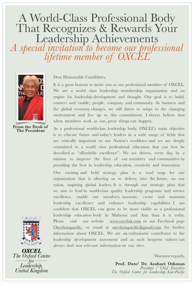 As an Ordinary Member of OXCEL, a person can attend our OXCEL 9 Qualities of Leadership CPD programme via online. Each of these qualities in 9QOL will be delivered via a stand alone module with 3 contact hours for each. Upon completion of each module, candidates will be awarded a Certificate of Completion by OXCEL Asia-Pacific. Candidates must complete all the nine modules of 9QOL in order to be awarded any of our professional certifications by OXCEL UK. All lectures will be held on e-learning basis via Zoom, Facebook Live etc.